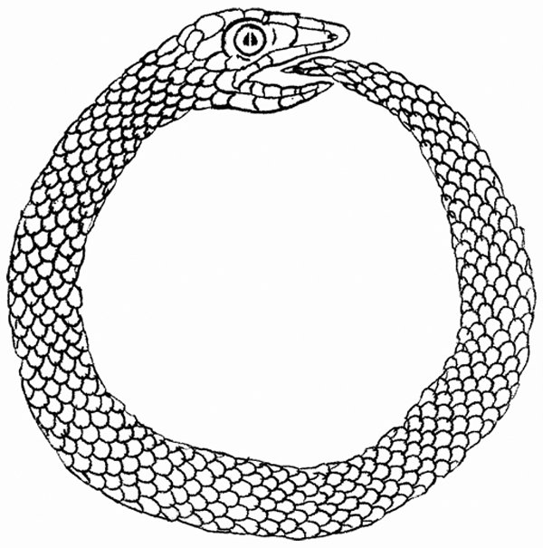 Front cover hand-stamped with a circular snake and signed by artist Lauren Drescher